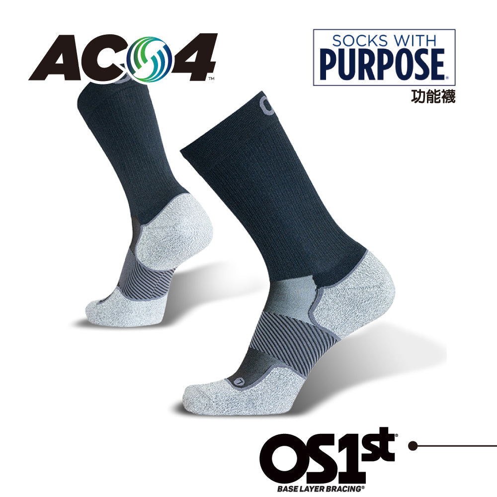 OS1st® AC4® Active Comfort Socks 足弓健康舒適襪,採用 OS1st 的兩項標誌性技術,在超薄 TA4™ ThinAir 襪子和超長毛絨 WP4™ Wellness Sock 之間以極致舒適的結合,創造出全新的 AC4™ Active Comfort 足弓健康舒適襪,奈米竹炭纖維和 OS1st 的透氣Skin Thin™ 技術,適用於運動及日常的各種場合,舒適材質防摩擦起水泡並提供腳趾舒適空間,透氣親膚,由輕至中度的壓縮更有效提供支撐和貼合。