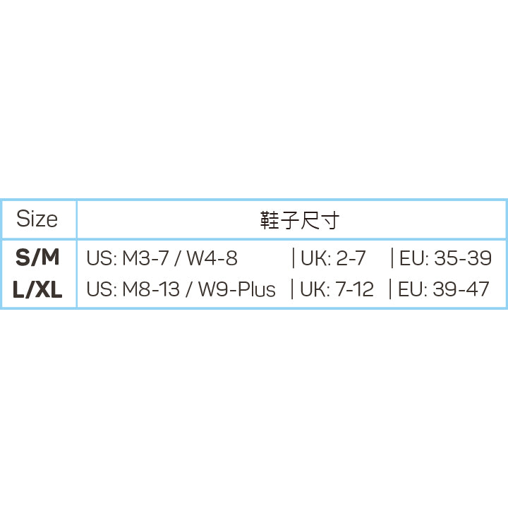 L/XL 男 US 8 - 13 / 女 US 9 - Plus