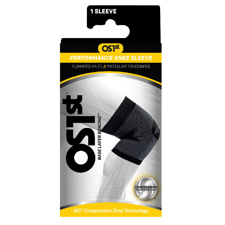 OS1st® KS7® Performancs Knee Sleeve高性能膝蓋護套(七段式) 使用專利分區壓縮技術,採用了頂級的精密針織機精準地將產品劃分多個壓力區域,針對肢體關節各部位提供不同壓力值的加壓和穩定,並舒緩因日常生活過度使用而產生的不適。