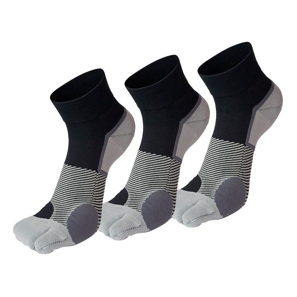 專為拇趾外翻設計的襪款,為你帶來更舒適的穿著體驗與全面的足部支撐。這款襪子採用獨特的分趾設計,結合緩衝墊概含與輕度壓力拱形支撐,有效調整足部自然對齊,減少拇趾外翻部位的壓力與摩擦,讓你走得更輕鬆。