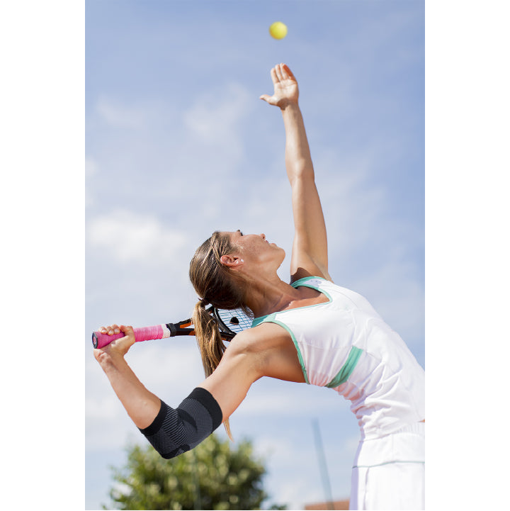 ES6™ Elbow Bracing Sleeve 專利設計加壓手肘護套(六段式),讓您在穿戴時不影響活動,使用抗敏止滑凝膠幫助護具固定在手肘位置,給予手肘肌肉與關節穩定及支撐,非常適合在運動訓練時使用。ES6™使用Compression Zone Technology®(分區壓縮技術)設計,將肘關節包覆在六段不同的壓縮區域中,提供肌肉關節良好的支撐,幫助舒緩活動中的不適感。