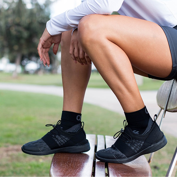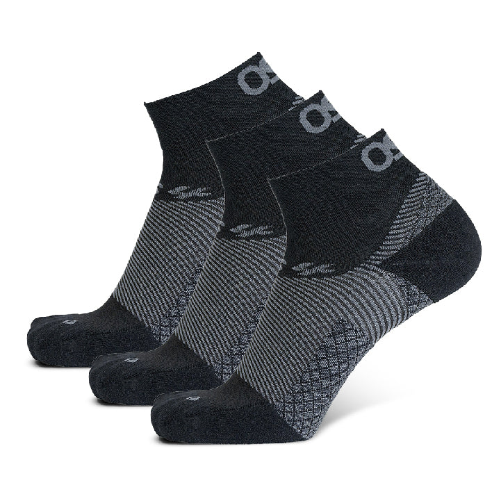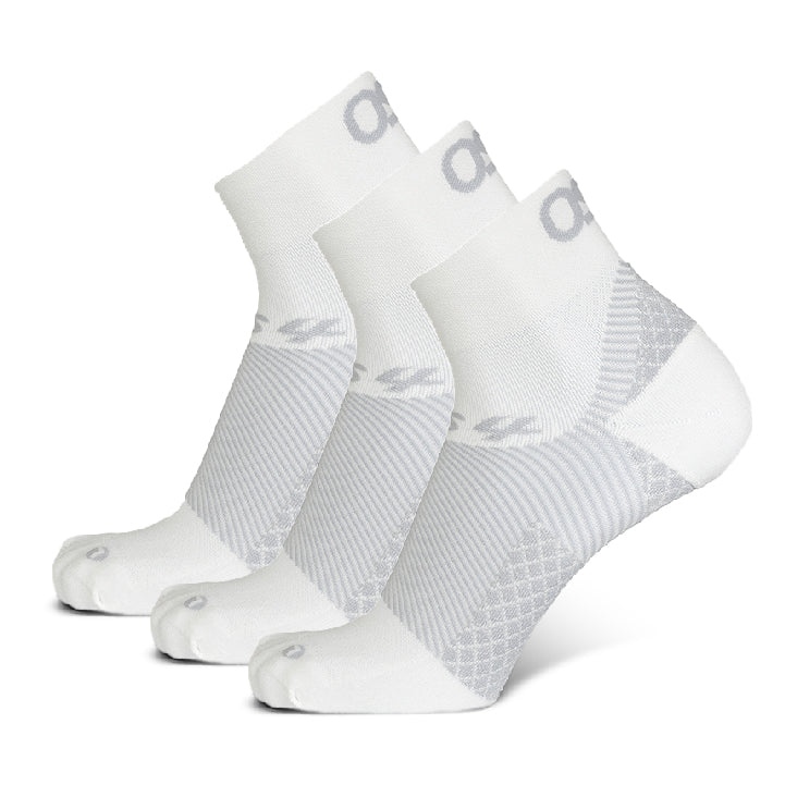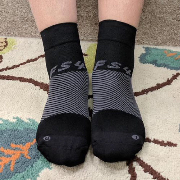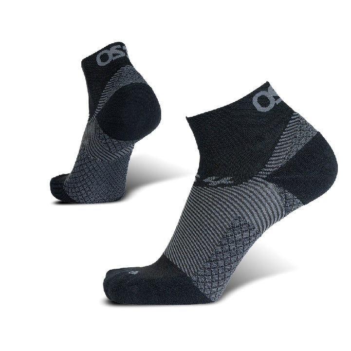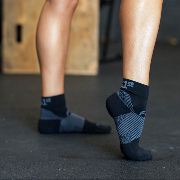 OS1st® FS4™ Plantar Fasciitis Socks 高性能足弓襪。透過專業分區域加壓技術,360度將足弓完整包覆強化支撐拉提,並給予腳踝穩固保護,以及提供吸震、緩衝的功能,減少活動時所造成的足部不適感。透氣性佳維持足部舒適清爽,另有左右腳對稱設計,符合人體工學,讓雙腳更服胋得到更佳的包覆與支撐。