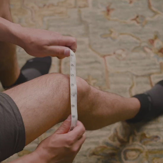 依照膝蓋下緣之髕骨周長量測,並參考尺寸表選購 (測量位置圖示於商品介紹圖中)
