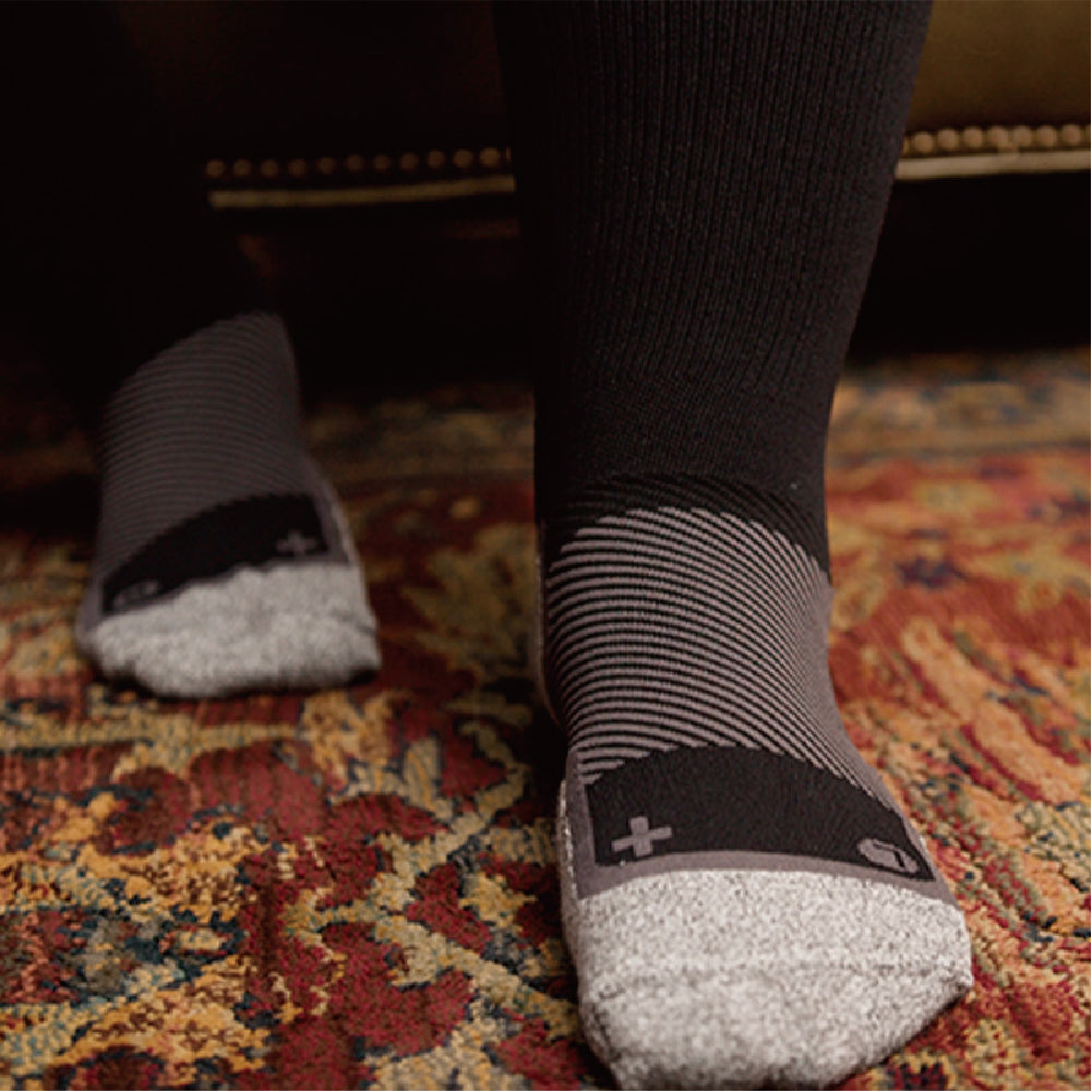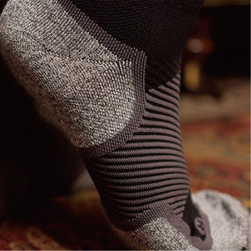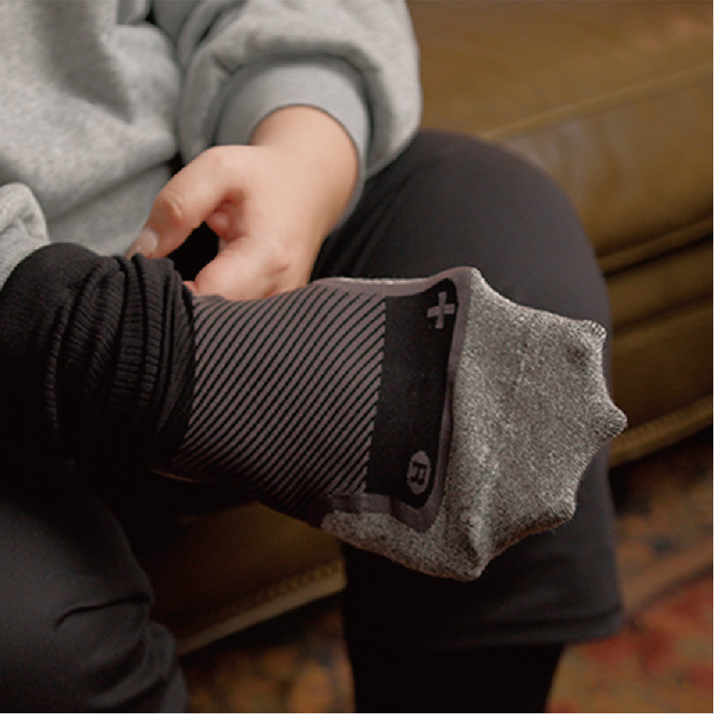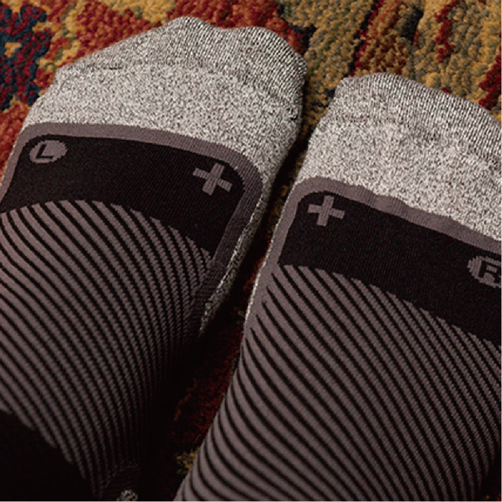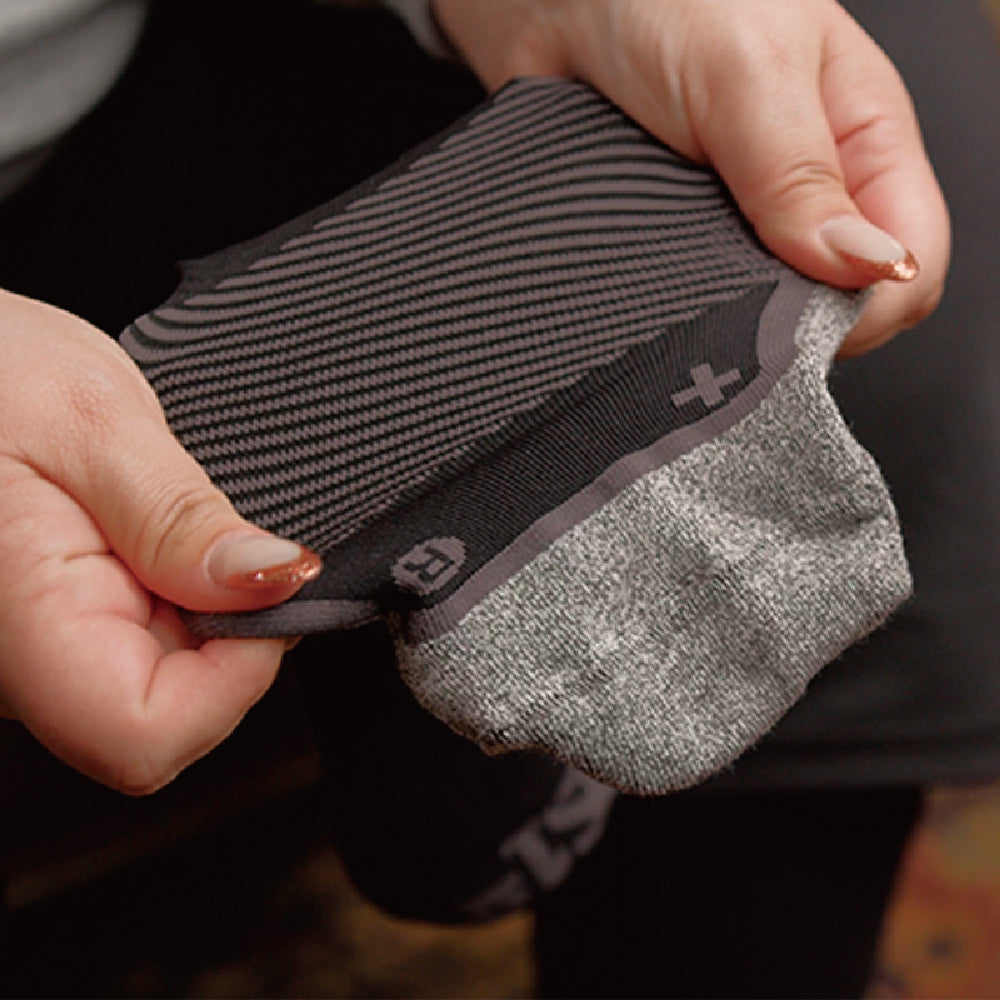 OS1st® WP4+™ Wellness Wide Performance Socks 足弓舒適健康襪(加寬版)使用專利分區壓縮技術,採用了頂級的精密針織機精準地將產品劃分多個壓力區域,針對肢體關節各部位提供不同壓力值的加壓和穩定,並舒緩因日常生活過度使用而產生的不適。